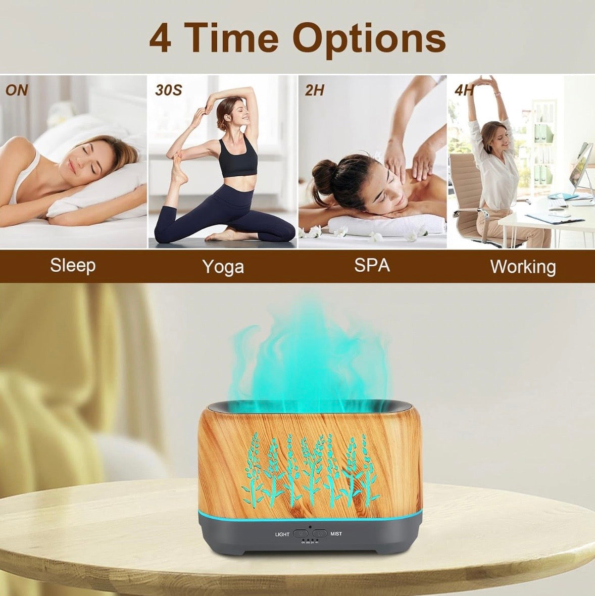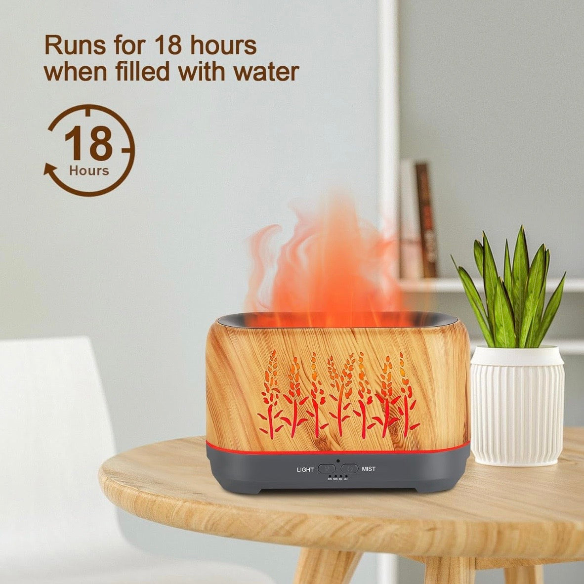 Experience the perfect blend of aromatherapy and ambiance. Our diffuser features a mesmerizing realistic flame effect with 7 customizable LED colors, creating a calming atmosphere in any room. Whisper-quiet operation and up to 18 hours of continuous misting.